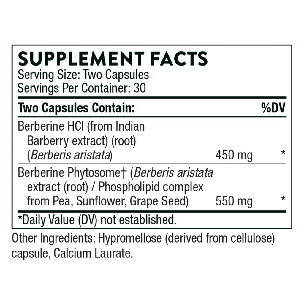 • Dual-form formula: berberine HCl + berberine phytosome