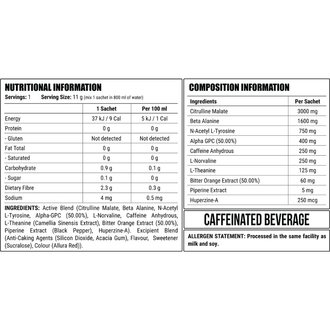 Mix and consume one serve 15–20 minutes before training, ideally on an empty or light stomach for best results.