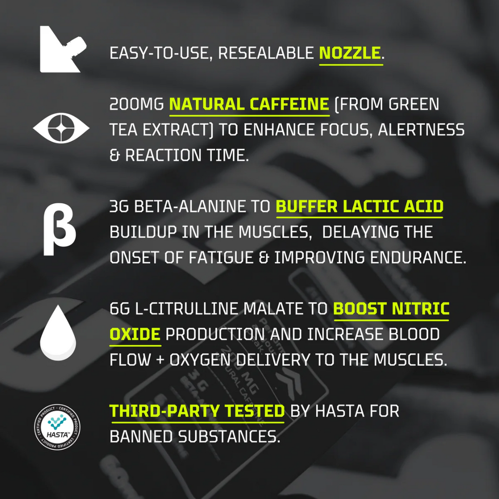• Sports Performance: Take 1 gel 30 minutes pre-game or pre-training
