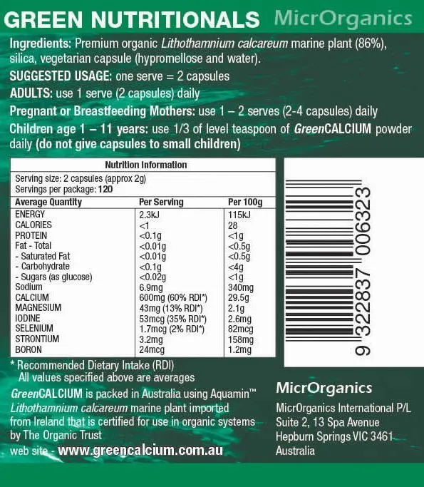 Green Nutritionals Pure Plant-Source Green Calcium Capsules
