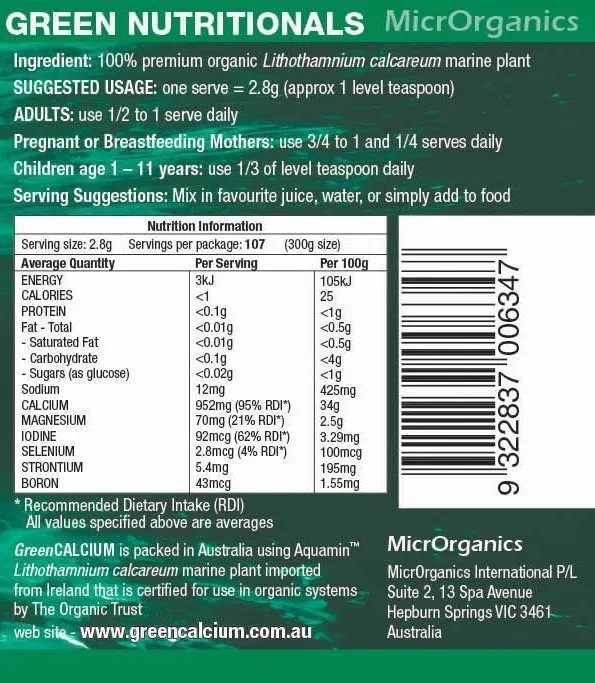 Green Nutritionals Pure Plant-Source Green Calcium Powder