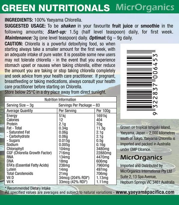 Green Nutritionals Yaeyama Pacifica Chlorella Powder