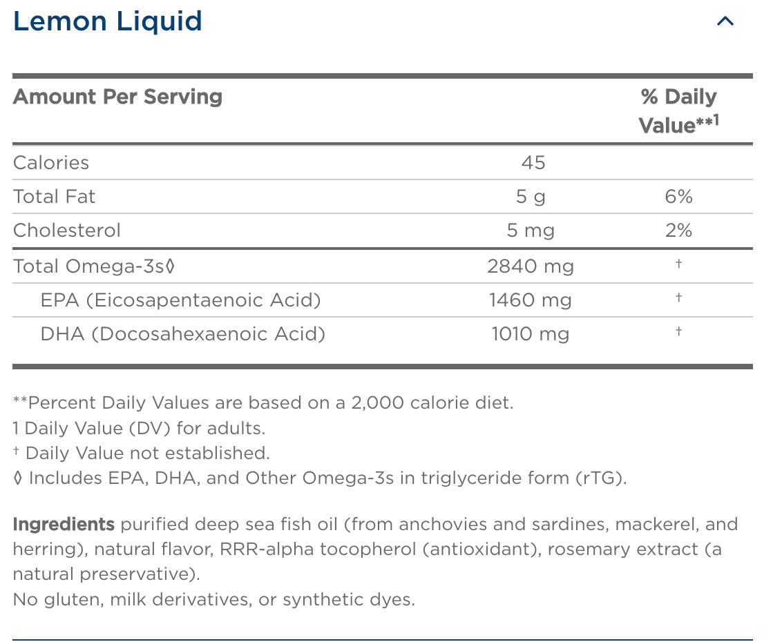 ✅ 750 mg total omega-3s (soft gels) | 1060 mg total omega-3s (liquid)