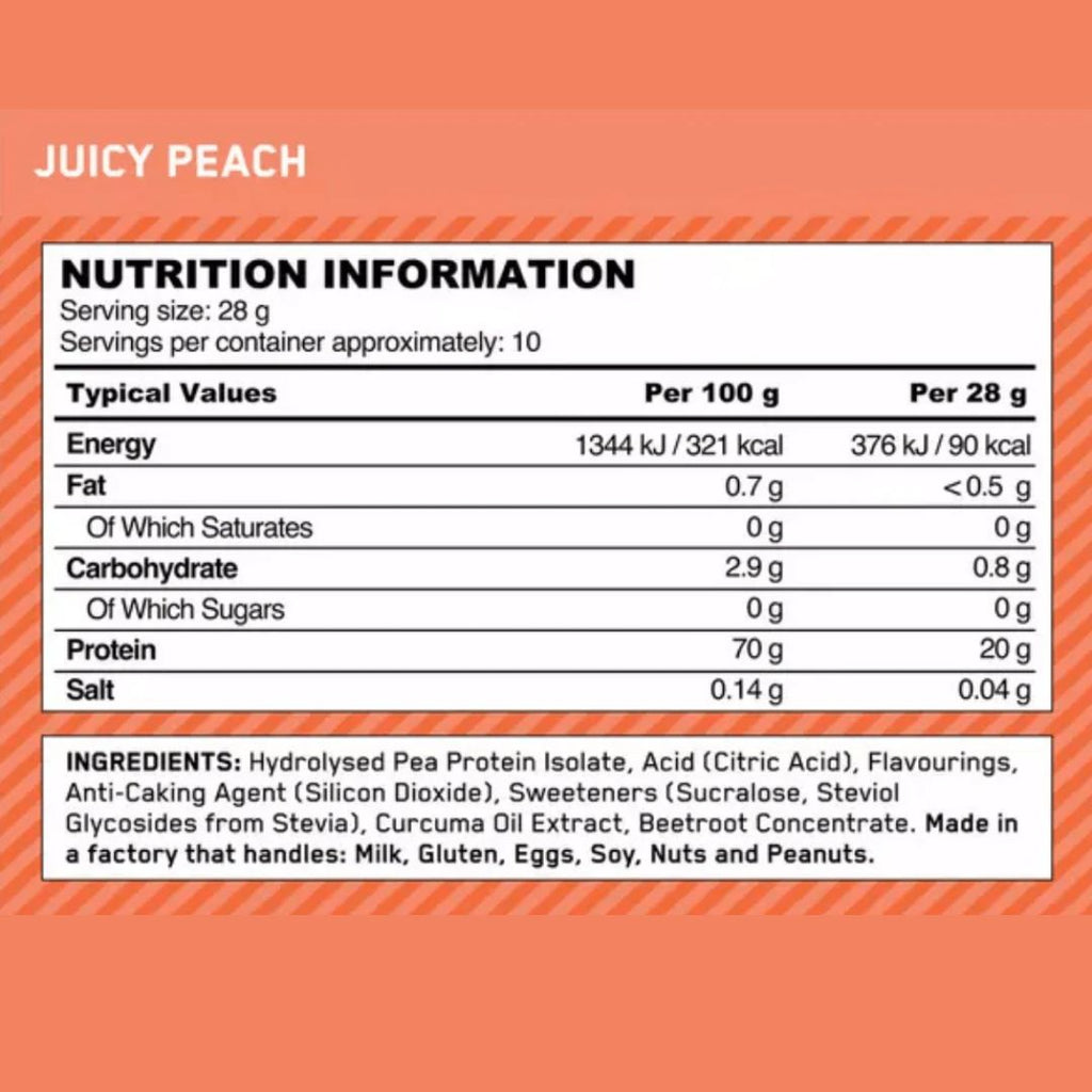 • 20g of plant-based pea protein isolate per serve