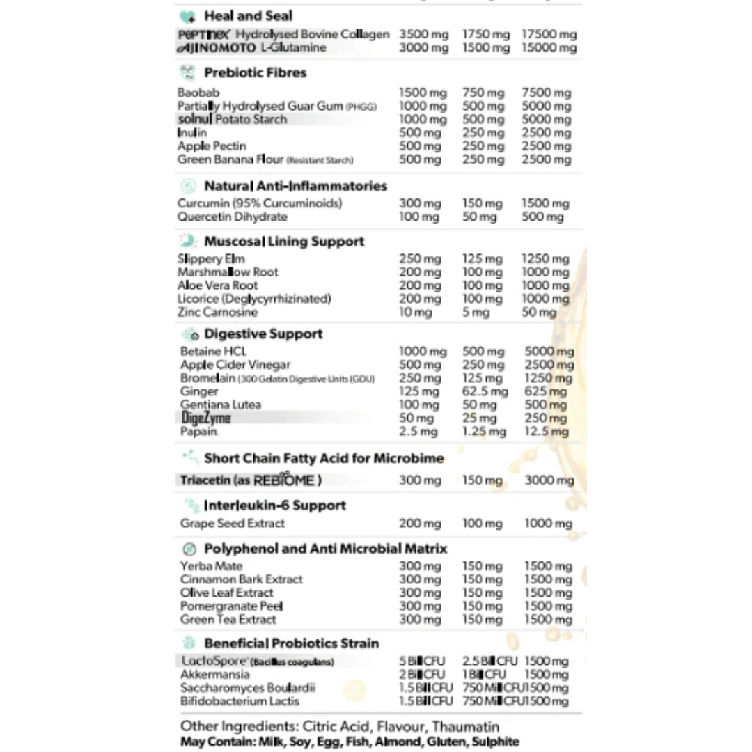• Contains hydrolysed collagen and L-glutamine for gut lining support
