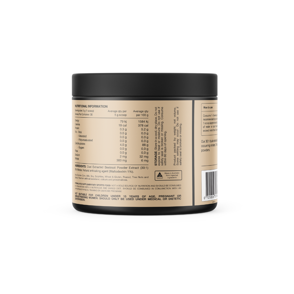 High Nitrate Concentration (6%) – Provides a clinically relevant nitrate dose (300–600 mg) in just 5–10 g of powder.