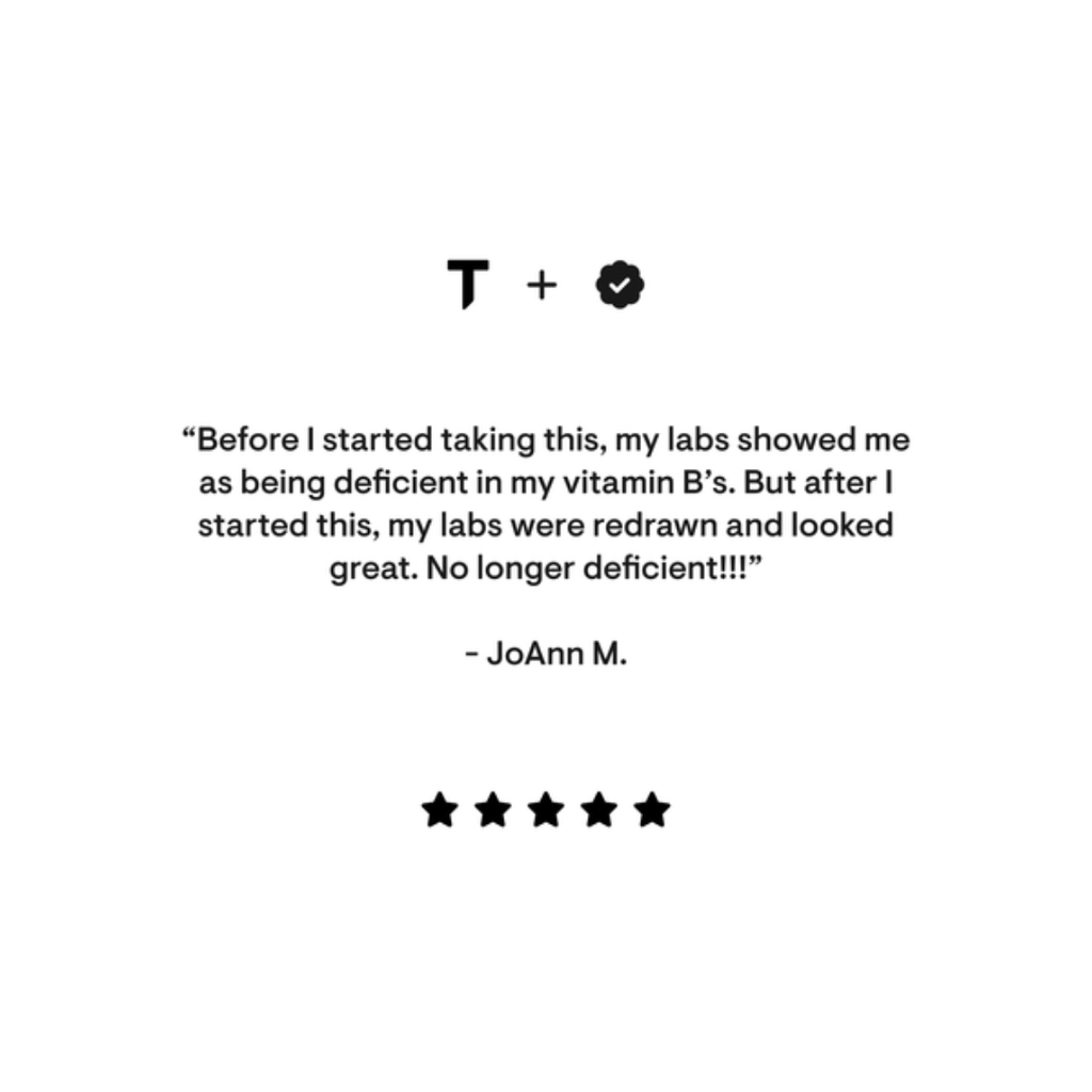 • Includes methylated vitamin B12 (methylcobalamin) and folate (5-MTHF)