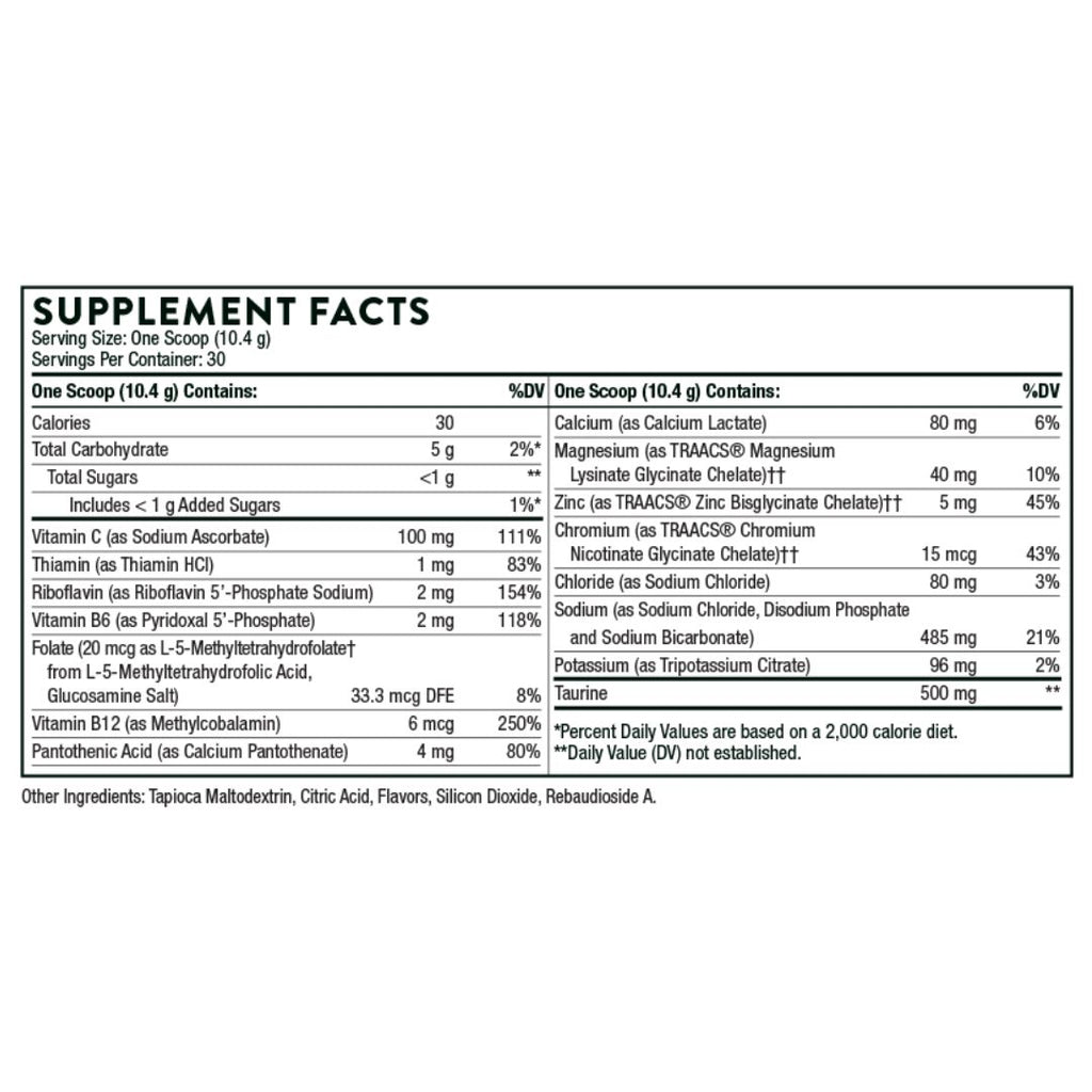 • Includes taurine, a conditionally essential amino acid that supports cellular fluid balance